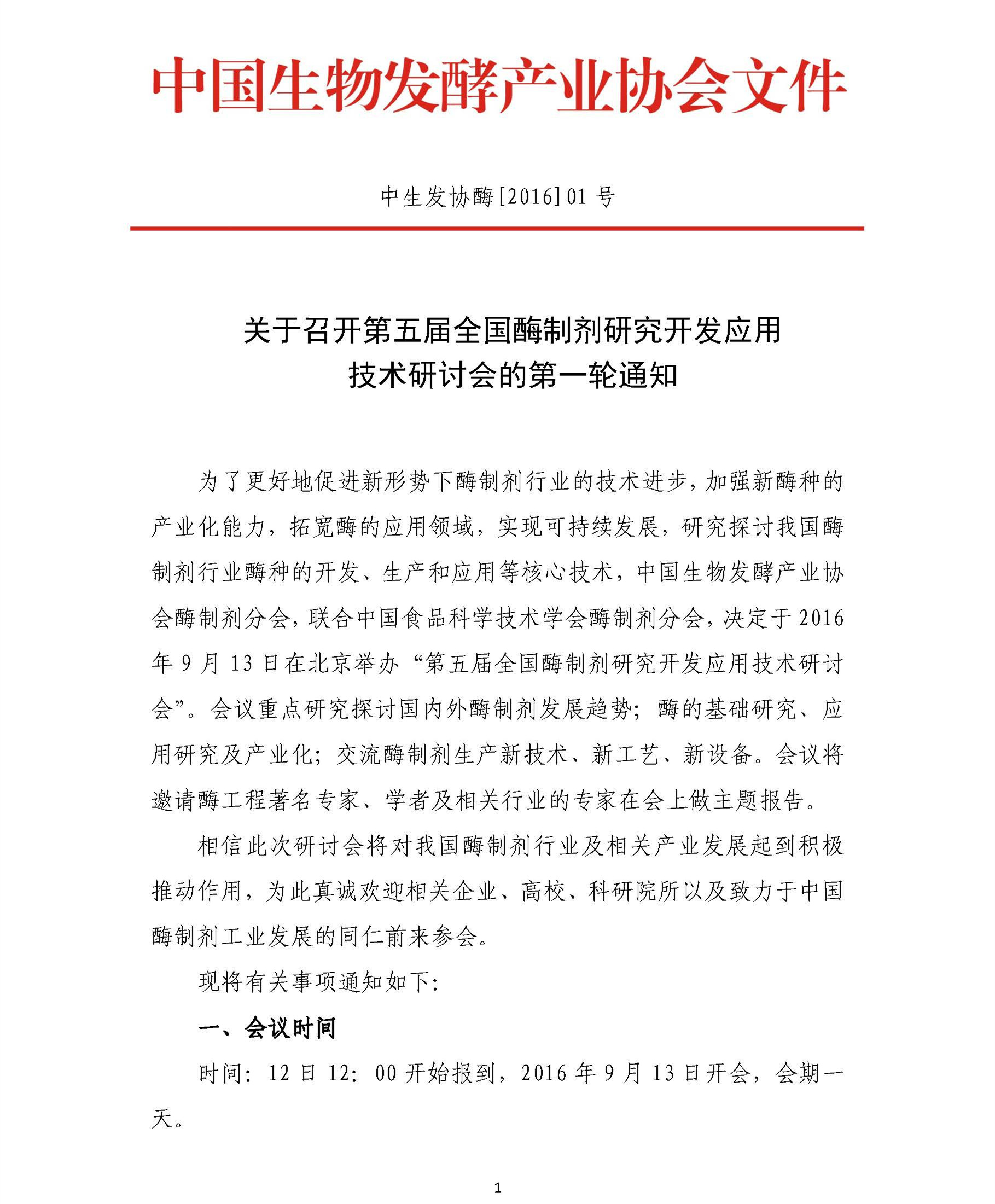 1、關(guān)于召開第五屆全國酶制劑研究開發(fā)應(yīng)用技術(shù)研討會的第一輪通知
